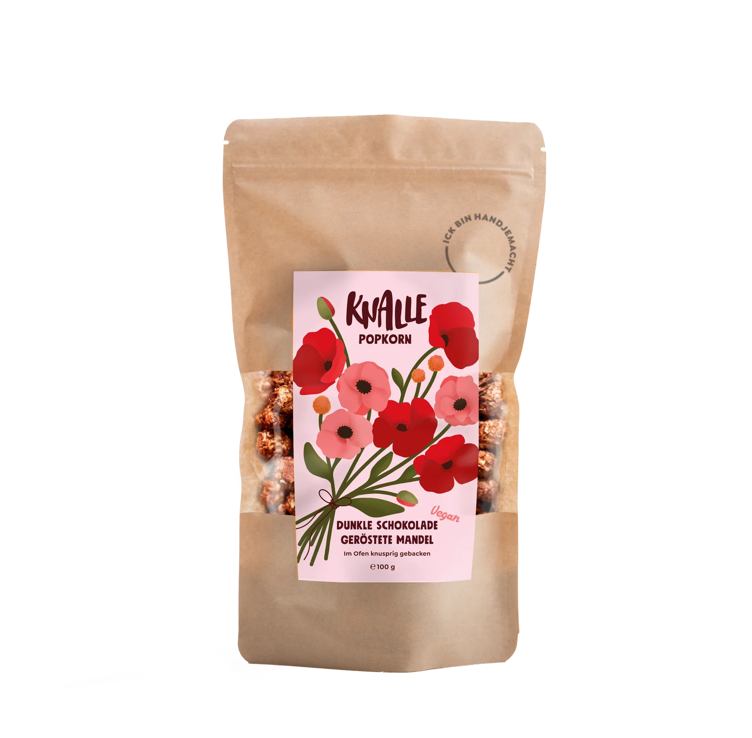 Dunkle Schokolade geröstete Mandel ist mehr als nur Popkorn – es ist ein knuspriges Liebesgeständnis. Feinherbe dunkle Schokolade trifft auf intensiv geröstete Mandeln und umhüllt handgebackenes Popkorn mit einer edlen, aromatischen Note. In der Knalle-Manufaktur wird jede Charge mit viel Sorgfalt veredelt und im Ofen knusprig gebacken. Für frisch Verliebte, für Lieblingsmenschen oder einfach für dich selbst, wenn du dir etwas Besonderes gönnen möchtest.