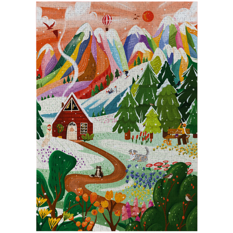 Beim Bunte Bergwelt Puzzle steckt viel durchdachte Gestaltung im Aufbau des Motivs. Pauline kombiniert klare Farbflächen mit weichen Übergängen, wiederkehrenden Formen und kleinen, liebevollen Details, die erst beim zweiten Blick sichtbar werden. Dadurch findest du beim Puzzeln schnell Orientierung, ohne dass der Spaß an der Herausforderung verloren geht. Die Mischung aus deutlichen Strukturen und überraschenden Feinheiten macht dieses Puzzle zu einem abwechslungsreichen Erlebnis: nie zu leicht, nie zu schwer – genau richtig für gemütliche Abende, kreative Auszeiten oder entspannende Wochenendmomente.