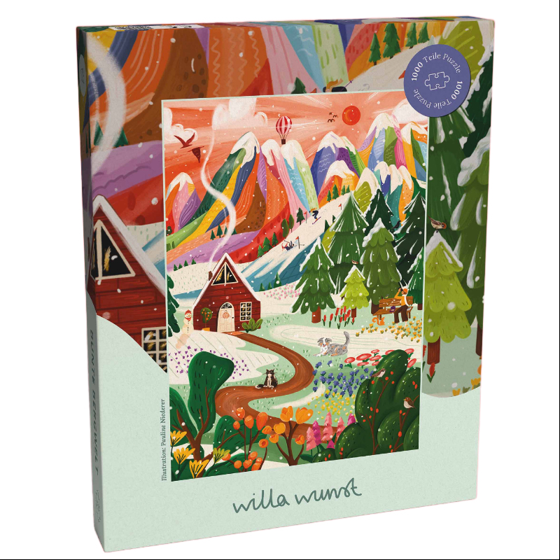 Willa Wunst wurde 2021 von Mirella Precek und ihrem Partner gegründet und steht für liebevolle Produkte, die Freude schenken und gleichzeitig verantwortungsvoll hergestellt werden. Die Zusammenarbeit mit talentierten Illustratorinnen wie Pauline Niederer ist dabei ein zentrales Element der Markenphilosophie. Nachhaltigkeit gehört selbstverständlich dazu: Die Produktion erfolgt ressourcenschonend, die Verpackungen sind plastikfrei und bestehen aus bewusst ausgewählten Materialien. Für die Herstellung wird Strom aus erneuerbaren Energien genutzt – Wind, Wasser und Sonne. Jedes Puzzle soll nicht nur Spaß machen, sondern auch ein gutes Gefühl hinterlassen, weil es fair, umweltbewusst und mit echter Wertschätzung entsteht.